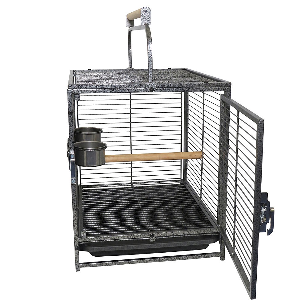 The large front door, slide-out grille and separate tray make it easy to access and clean this Parrot Travel Cage – Medium.