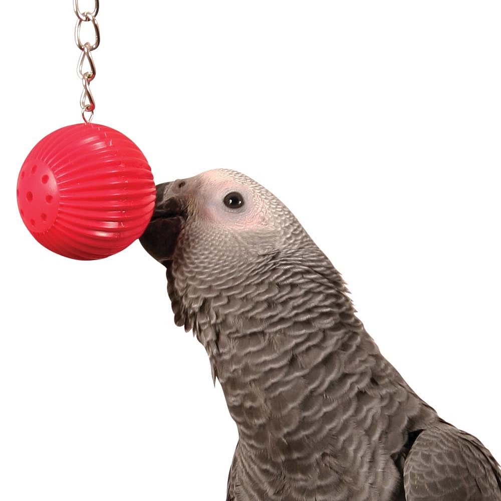A bird has to learn how to activate the sounds, which is achieved by knocking the ball with their beak or against the cage bars, a perch or another object. The tough casing is designed to take whatever a Parrot can throw at it, or even whatever a Parrot throws it at!