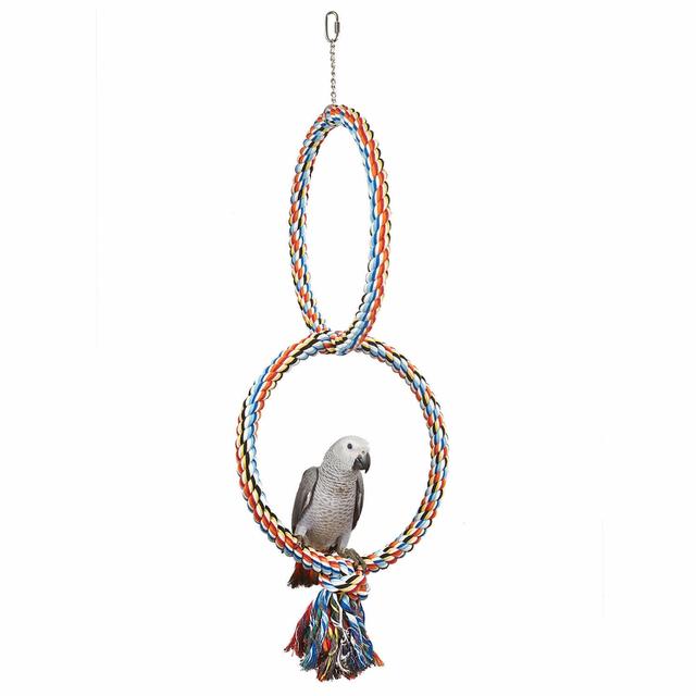 The Adventure Bound Toys Coloured Double Ring toy is suitable for Large Parrots, e.g. Macaws and other similar sized birds.