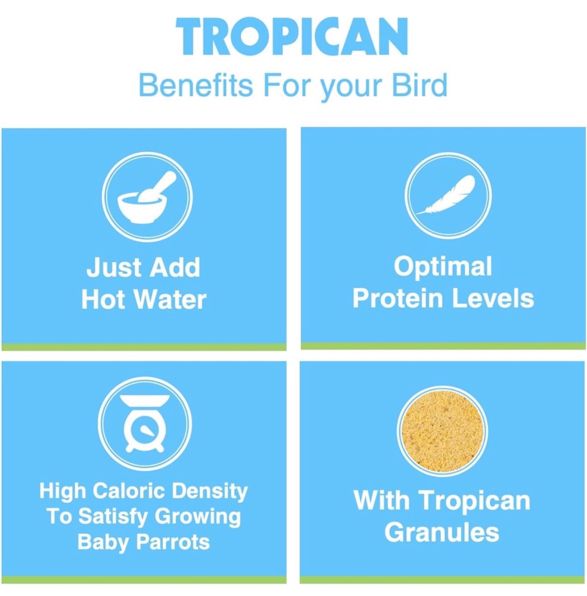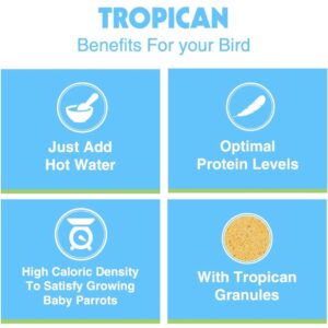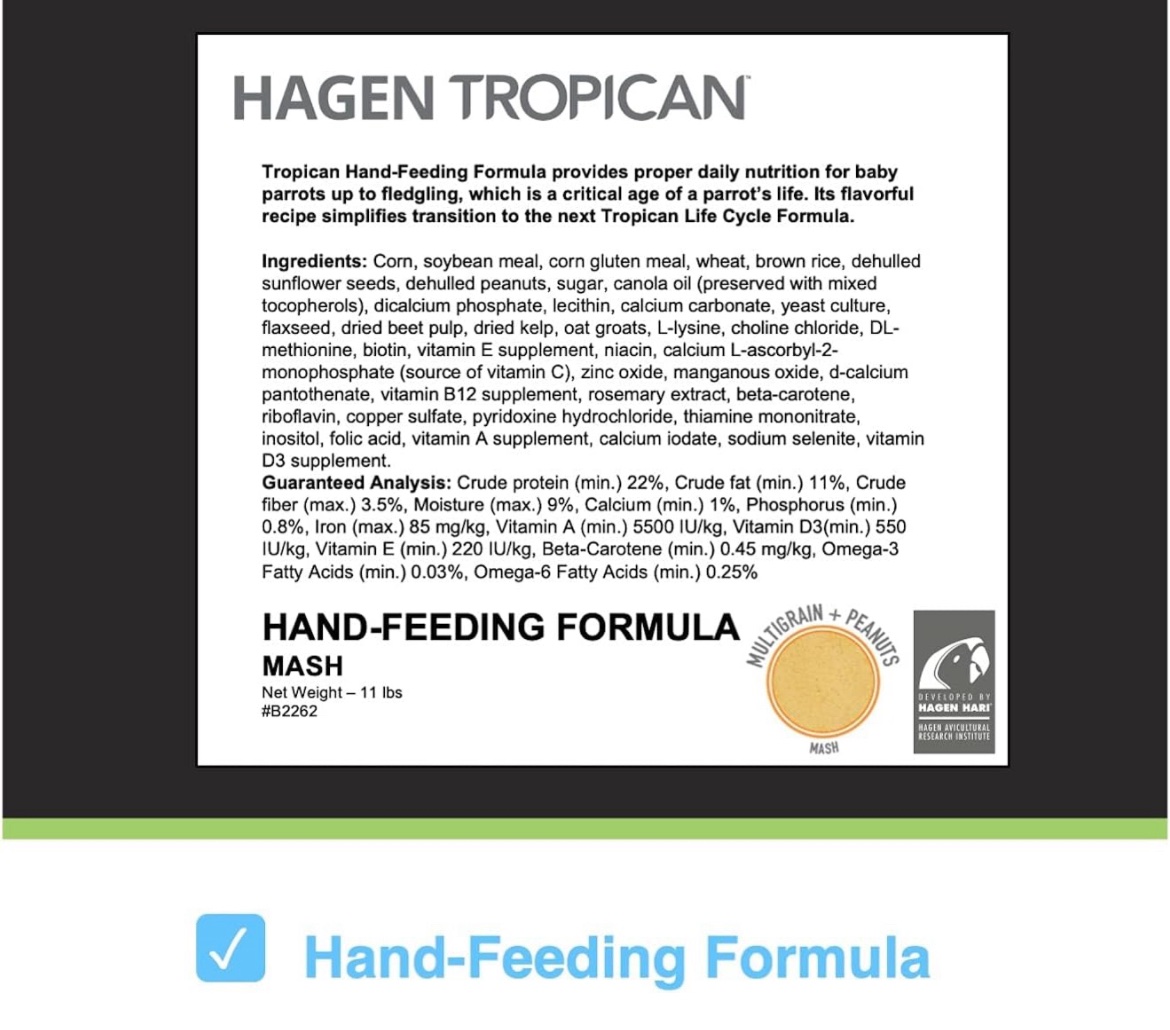 Hagen Hari Tropican Hand Feeding Formula offers premium daily nutrition for baby Parrots.