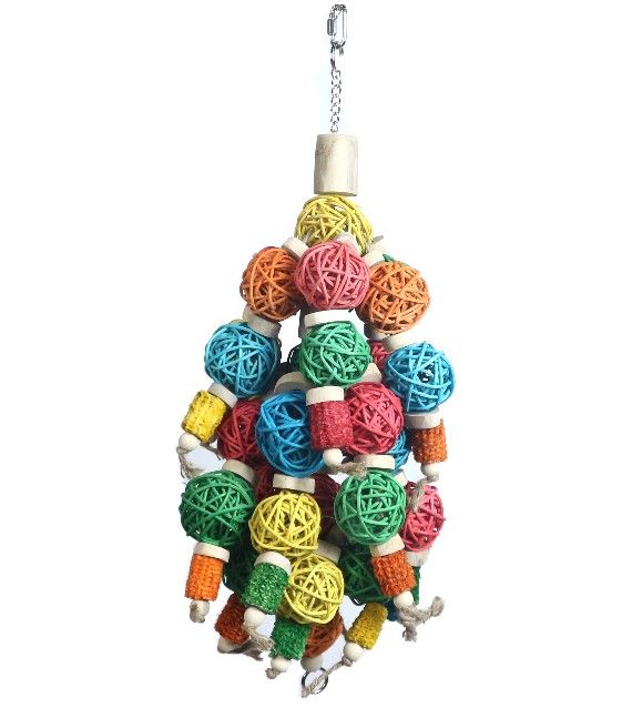 Giant rattan monster chewable toy. Crammed with woven vine balls and natural kayu wood pieces which are heat treated for added strength. A chewing frenzy toy!