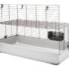 Nero 3 De Luxe is a spacious indoor cage for your guinea pigs and dwarf rabbits. Underneath the plateau, your favourite little pet will find a cosy place to sleep, whilst he can sit, eat or lie down at ease on the platform. The detachable bottom makes replacing the bedding inside the pen a quick and easy job. The cage comes with a feeding bowl, a drinking bottle and a hay rack, making your dwarf rabbit’s new home ready to move into right away. The large front and top access doors make feeding the pets and everyday cage cleaning a piece of cake. The 2 handles that are included make it easy to move the cage around.
