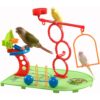 Two plastic square hoops and a wood disc slide up and down the bar making a fun rattling noise as the Parrot plays, and trying to figure out a way to remove them is all part of the fun.