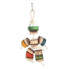 The natural wood shape has some features etched in to the wood. However, all the coloured buttons are made from corks. Which have been wedged in for your Parrot to enjoy spending their time pulling out.